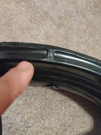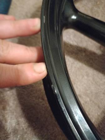 * The front wheel was weld corrected/repaired, but is still cracked. The crack is where the weld is, and goes along the edge of the wheel on the outside of the wheel. it is very small and hard to picture, but is 2 or 3 inches in length. I dont think it is repairable, but I am not expert. It also has a few very little light cosmetic bumps/scratches/nicks. The prior fix looks very professional, and the wheel is 100% straight; bearings are excellent. The inside of the rim is smooth as needed to set the bead of the tyre.