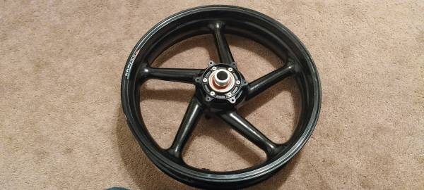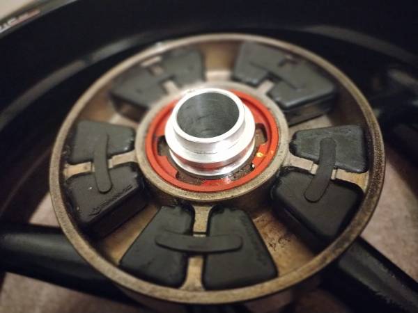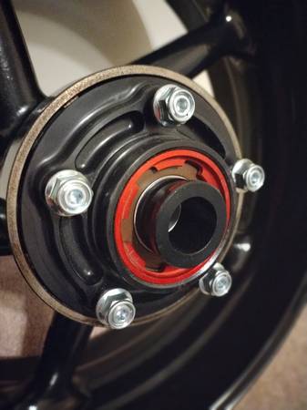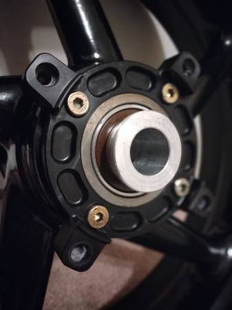 * The rear wheel is in super excellent condition, no real imperfections worth mentioning. It has a new sprocket carrier, and new cush drive bushings as well. Bearings spin smoothly.