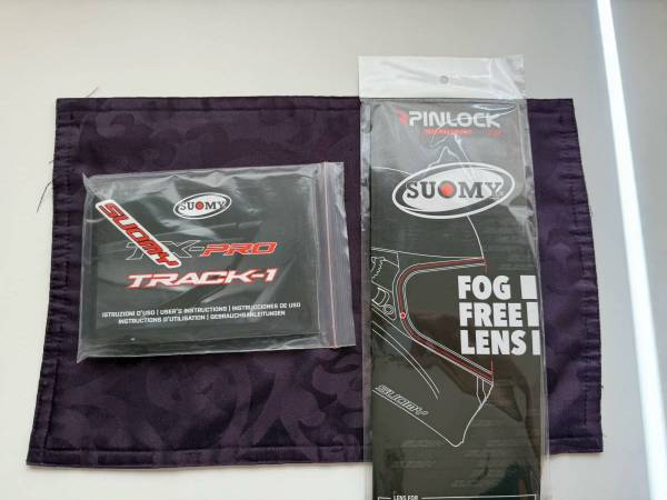 SUOMY TRACK 1 HELMET SIZE SMALL. ONLY WORN A HANDFUL OF TIMES TO HAYWARD BIKE NIGHTS AND ACROSS THE SAN MATEO BRIDGE. COMES WITH THE MULTI IRIDIUM VISOR, THE ORIGINAL VISOR (BRAND NEW) AND THE FOG...