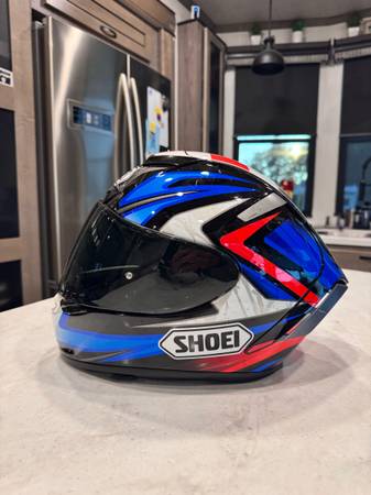 SHOEI X-Fourteen Bradley 3 Full Face Motorcycle Helmet Size M Manufactured in 2015 Used sparingly by my wife Padding is in very good condition, no smoking no pets. Slight cosmetic wear at the bottom...