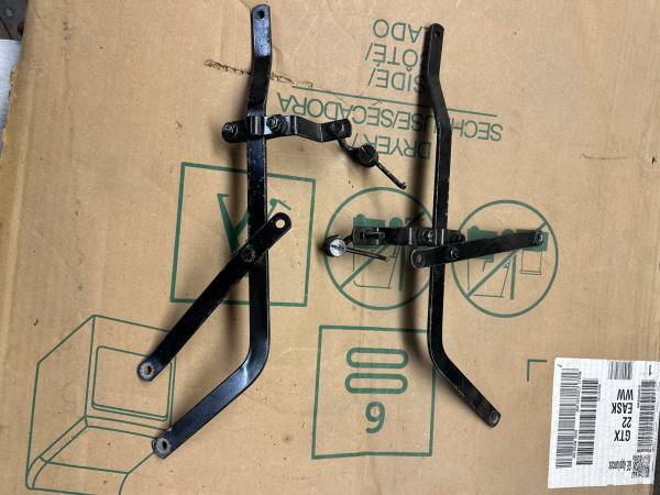 Vintage Craven Motorcycle luggage saddle bags and top bag , 575.00, they where on a BMW R50, but fit many vintage bikes, Triumph, Norton, Ect, the difference would be the mounting racks, I have several to chose from, Also BMW rear folding rack 80.00. Some take off R50 alum shouldered rims a little rough with dents 100.00 for the pair. If it's listed it's available. Serious only please.
