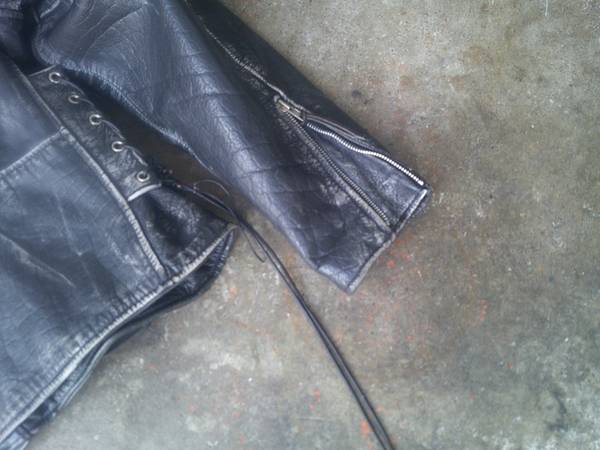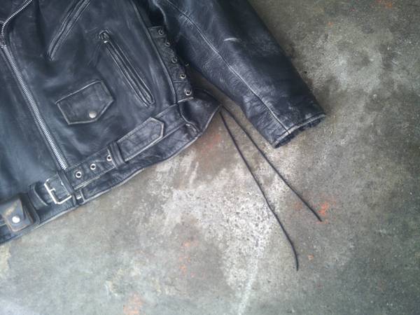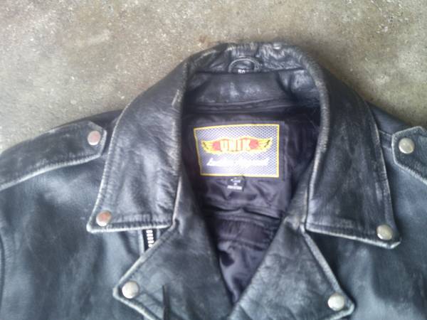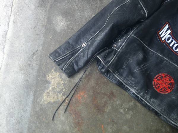 I'm selling my rare UNIK brand genuine leather jacket, men's XL, lots of patina, distressed, nicely broken in leather, has a nice liner also, inner pockets, outer pockets, quality custom Harley Davidson Willie G patchwork done by hand, also, a vintage Harley lighter case and lighter with much patina, a very cool jacket, laced side adjustments, hanging cords, zippers are heavy duty, all work perfectly, snaps also, a heavy jacket, 7lbs, very comfortable and warm!, a one of a kind jacket! "Lowballers will be ignored!"
