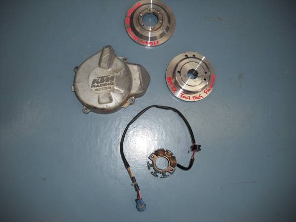 Parting Out 2004 KTM 450 SX Air filter Carrier, plastic $5.00 Airbox filter wall $10.00 Battery box $10.00 Brake Line Hose - Front $40.00 Brake Line Hose - Rear $40.00 Camshaft with timing gear...