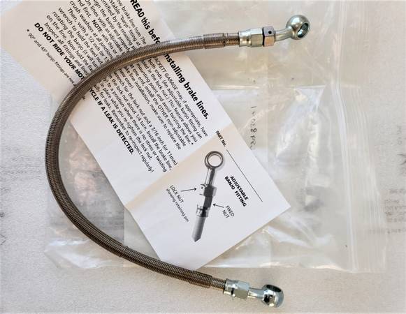 New extended braided stainless steel front brake line for K27 2006 to 2020 BMW R1200R R1200GS This is a genuine BMW brake line manufactured by The Nickwackett Garage of Vermont. Google it you are not familiar. This line goes down from the front brake master cylinder to the split. Use this with Handlebar risers or modified handle bars, or use them as-is if you need extra length on your Front Brake Line. This has 1 inch extra length to accommodate bar risers and other handlebar mods.