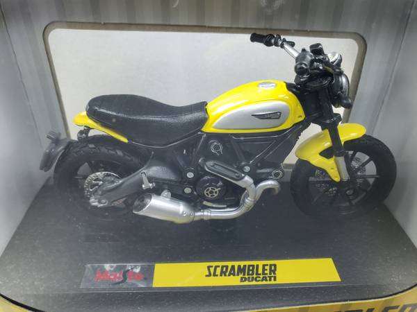 Brand new mint in unopened mint display box, Ducati Scrambler die-cast motorcycle model 1:18th Scale Official Ducati licensed model 987694370 made by Maisto. Contact by craigslist email