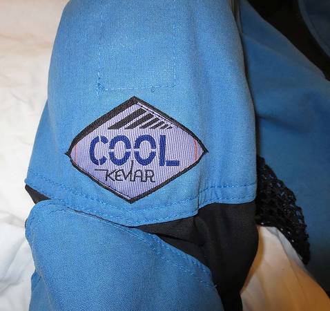 A super lightweight, basic jacket. Would be great for a scooter-rider, monowheel rider, etc. just to have some basic wearable padding in the elbows and shoulders. Kevlar in key areas, ventillated and heavy-duty cotton in others, reflective elements.
