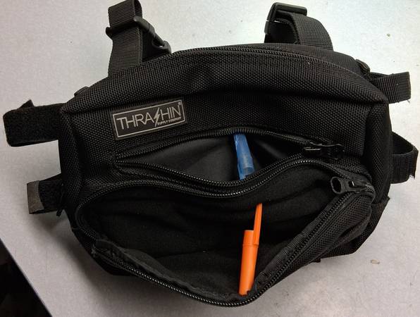 Great for safely carrying your wallet, sunglasses ,spare key, flashlight, etc. Bag appears to be never used, and is in excellent condition. All zippers work,and numerous Velcro straps for attaching are included. Have heard that this bag lists for 75-100. Whatever. Call ,and leave message for a return call. show contact info