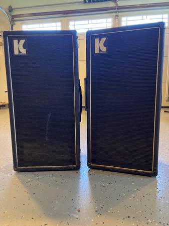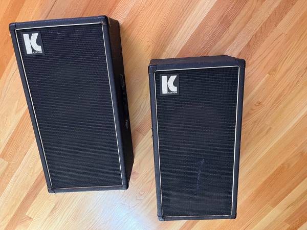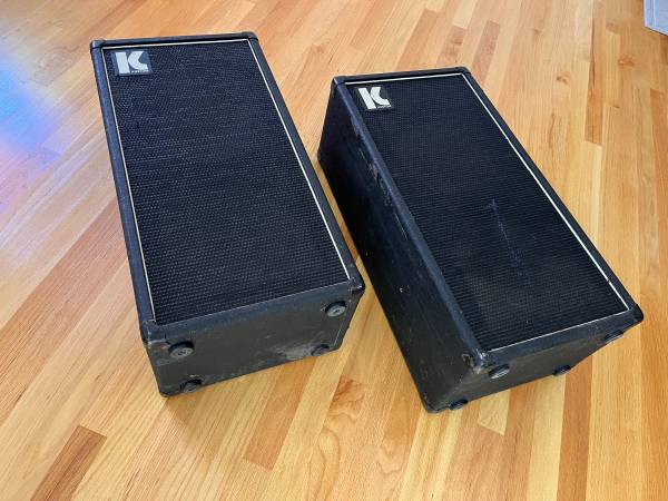 Super iconic look, and stereo presence on stage together. Look and sound great. 2 1/2’ tall. Easy to carry handle, great for guitar/bass/keys. Probably 30w speakers, two in each cabinet. With handles!!