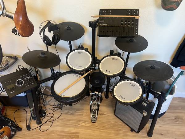 If you’re looking for a professional electronic drum kit that feels amazing, sounds incredible, and works perfectly for practice, recording, or live performance, this TD-17KVX is the sweet spot in the Roland lineup. The KVX model upgrades the hi-hat and snare for a much more realistic acoustic feel, and this one has barely been used. No issues!
