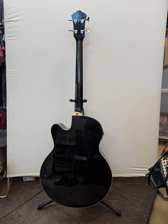 We had a lot of fun with this bass, it has a great acoustic and amplified sound, with an undersaddle bridge pickup. It's playable, sold as-is and rock bottom price, given a couple things: