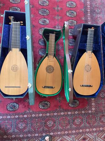 Three wonderful lutes on consignment at Timbre Folk and Baroque.