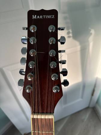 Lightly used 12 string acoustic guitar - Martinez FAW-802TBS-12. Excellent condition, no chips / dings, plays great. Comes with a nylon case.