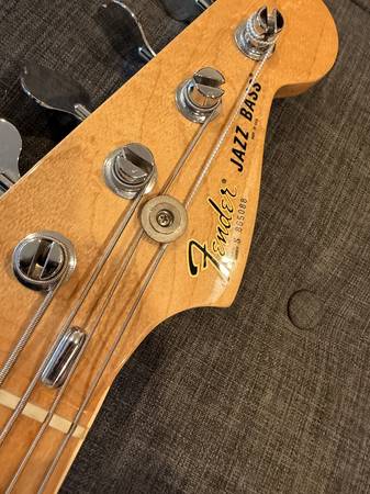 This '78 Fender Jazz Bass is the real deal — black finish, maple neck, and that unmistakable tone that defined bass guitar in the 70s. It sounds and plays great and offers that pure vintage mojo ready to lay down the groove. It has been played and enjoyed, and shows the wear from those hours, but no abuse and the original frets have plenty of life left. Does not include a case.