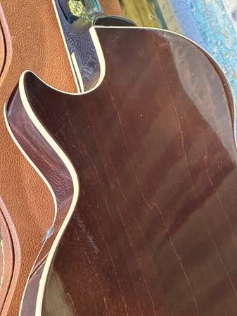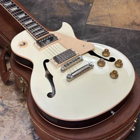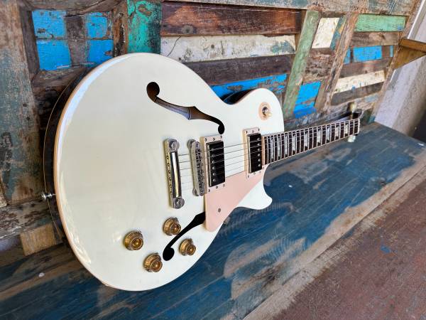 Lightweight fantastic sounding guitar in a tough to find color (Classic White). The back and sides are dark transparent. It's a more comfortable (smaller than ES-335) way to get semi-hollow tones.