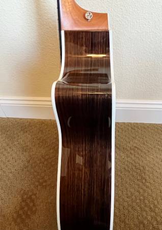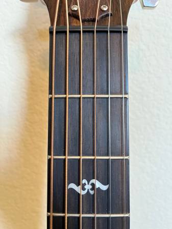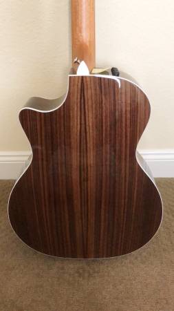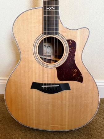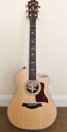 The 414ce-R has the tonewoods of a 814 with a 414 price tag. Wonderful tone and projection! Ebony fretboard and bridge. The ES2 built-in electronics allow you to perform through an amplifier. A true closet queen, no noticeable signs of wear, still has the plastic on the tortoiseshell pickguard! Has new D'Addario strings and professionally set up for low action and comfortable playing. Also includes the deluxe Taylor hardshell case at listed price. Clean and gift ready. Buy pre-owned and save yourself some money! A new Taylor model 414ce-R will run you about $2900 plus tax (or about $3150 total!)