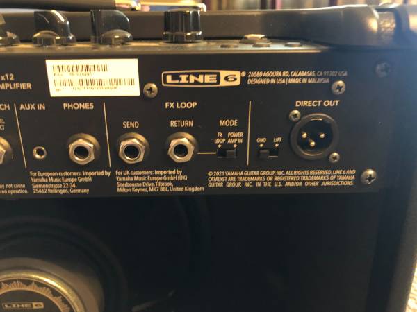 I have for sale this Line 6 brand Catalyst 60 amplifier. It is in perfect condition and was only used as a practice amp here at my home. One 12" speaker. Deal also includes the optional foot switch. It has some nice features, the main one is the power output is adjustable from 60 watts down to 1/2 watt (60, 30, 1/2, mute). On board effects too like delay, modulation, and a tuner. See chart picture for some features and specs. Six different tone selections from clean through high gain. Effects loop and an XLR output that can plug into a mixer so amp comes out the house system (monitors and mains). I'm only selling it because I've purchase a Fender Tone Master Pro effects board and 2 FR-12 powered speakers so I don't need it anymore. Amp can be seen most any day from 9am through 8pm. Call, text, or email me to set up a time to come check it out.