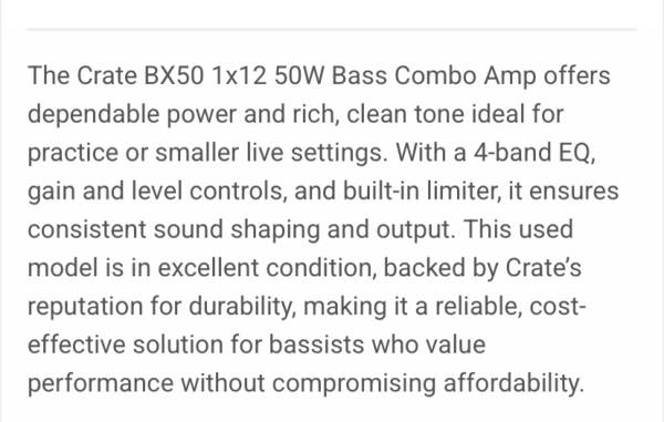 Crate bx50 bass amp 50w with great tone 2 inputs and 12” speaker Clean and excellent working condition