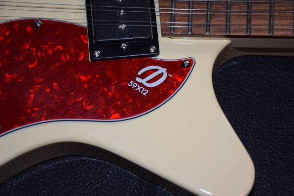 The Danelectro 59X12 — 12-string version of the groundbreaking 59XT — serves up a fragrant 12-string bouquet and a hearty spoonful of that classic Dano Shorthorn style. The 59X12’s neck P-90 and coil-split lipstick humbucker are your ticket to a world of folksy cleans and jangly pop nostalgia, with a broad palette of blitzed-out rock and psychedelic textures just waiting to be discovered. The 59X12’s resonant hardwood body and snappy maple neck operate in perfect harmony, with a pau ferro fingerboard adding to the guitar’s overall richness and sustain. A hardtail bridge (adjustable) gives this affordable 12-string rock-solid intonation and sustain. Rounding out this stylish semi-hollow is a set of die-cast chrome knobs and complementary chrome hardware.