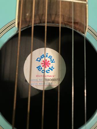 I have available a Daisy Rock Acoustic guitar. It is in like new condition and has only really been played a few times, otherwise it's lived in it's case safely put away. It comes with all the original stickers as well as the original warranty information booklet. It's also in it's own purple Daisy Rock guitar case. This guitar is gorgeous and would make a perfect first guitar for someone's daughter, granddaughter or any young lady interested in picking up a guitar for the first time, or even an intermediate player. It sounds wonderful and looks wonderful. $130/obo, feel free to call or tex t me. I will try to respond to emails as best I can.