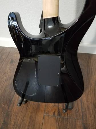This guitar is all blacked out, EVERYTHING is black, including: Floyd Rose + nut, input jack, knobs, Tuners, Pup selector switch, everything. Has a Seymore Duncan 59 in the neck and a Dimebucker in the Bridge, Guitar is spotless and sounds fat. ... there is a ton of value in this guitar.