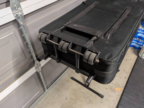 Solid keyboard case in good condition with wheels. Provides good protection for your gigging keyboard. All zippers work. Padded straps securely hold your keyboard in place, and wheels make moving it around a lot easier. These retail for $285 on Amazon. Selling this one for half that, and no sales tax or shipping hassles.