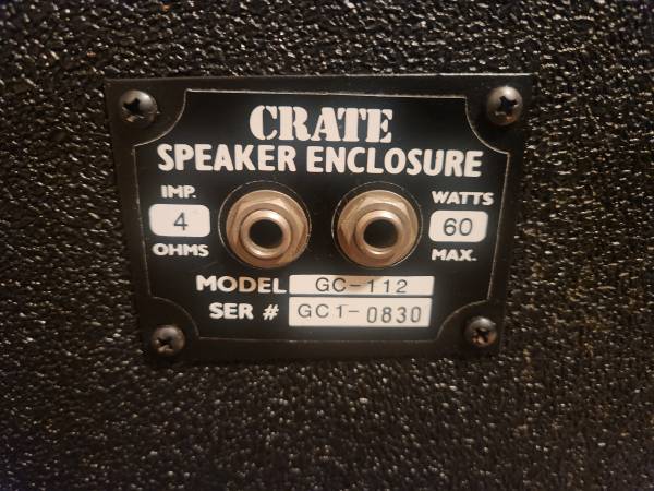 Vintage 1980s Crate GC-112 closed-back guitar cabinet. Rated 60 watts at 4 ohms. Solid build, good focused sound, excellent condition other than a tear in the grill cloth (see photos). Perfect for a smaller head setup or extension cab for your combo.