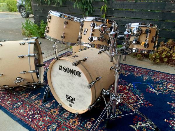 Hello! What we have here is a 2020 Sonor SQ2 Birdseye Maple in matte finish drum kit, the Flagship model from Sonor, the worlds best built drums. I am the original owner.