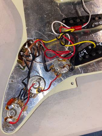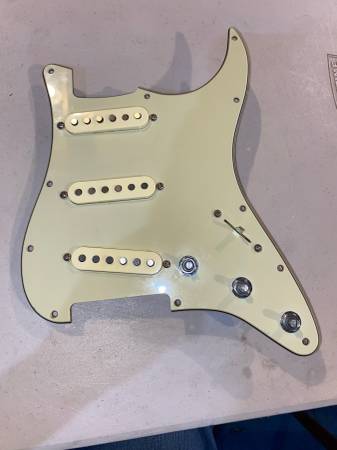 Quality LOADED parchment pick guard in great shape loaded with Fender Tex-Mex PU's. Brand new PU covers. Wiring has been modified over time. Tone controls for neck/middle and bridge. $125