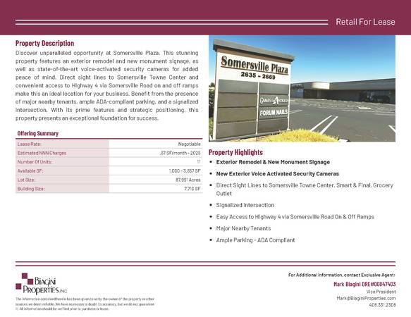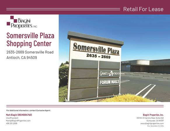 PRIME RETAIL SPACES AVAILABLE FOR LEASE at Somersville Plaza