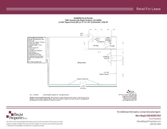 2651 Somersville Road: 3,657 Square Feet (SF) (± 72’ W x 51’ D) Divisible 1,200 SF
