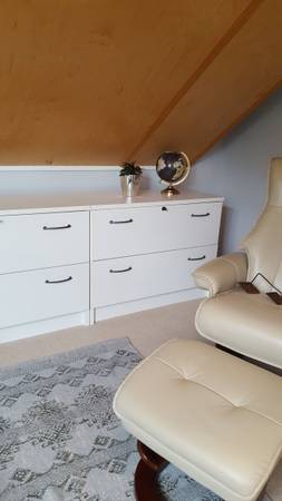 In addition to the office you will have access to a comfortable waiting room decorated with many well cared for plants, a small shared kitchen with a refrigerator and microwave, a large cabinet to store supplies, and a nook with 2 skylights that serves as a cozy lunch/break room.