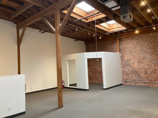Second floor walk up. Bright and cheerful office/design studio space in quiet building. Cafe in building open for breakfast and lunch. Well maintained common areas. Office has AC and heat and 3 operable skylights. Beautiful brick and timber with high ceilings. One semi private office. Kitchenette. Clean carpet. Close to freeways 80, 24 and Bay Bridge.