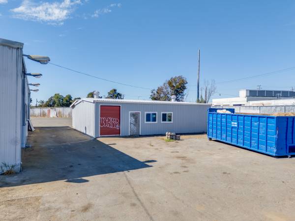 Warehouse building: Freestanding building (~1,150 sq ft) with two bathrooms suitable for industrial or commercial use.