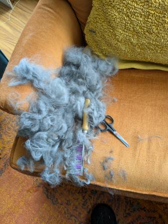 I am Frankie Pritchard, Bay area bunny groomer and pet sitter. I have specialized experience grooming Lionhead bunnies since sitting and grooming many Lionheads for the past 5 years. These bunnies are more prone to mats and tangled fur than other bunny breeds because of their long fine hair. Many are "double mane" with extra hair around their heads, causing hay to get caught in fur and painful mats to form between their ears. I use rounded scissors to trim mats, including long hair around their eyes which can cause difficulty seeing. I charge $40 for major trimming. This fee includes nail trims and scent gland cleaning.