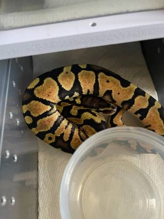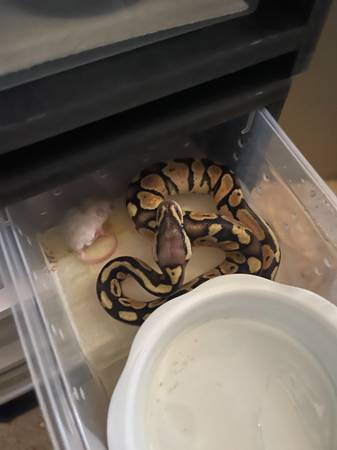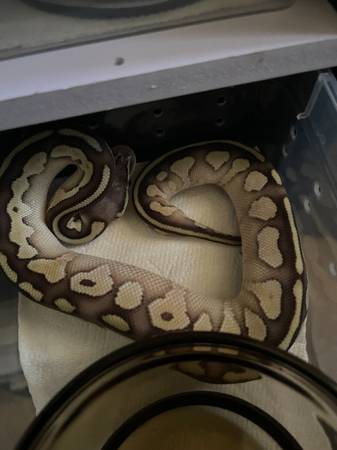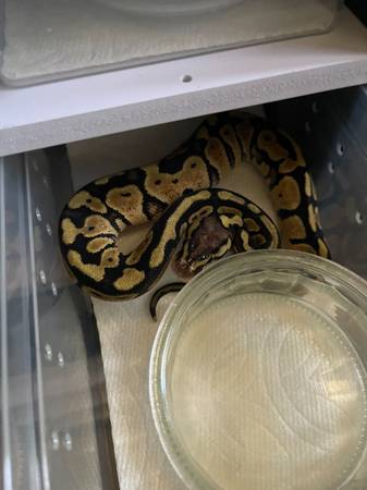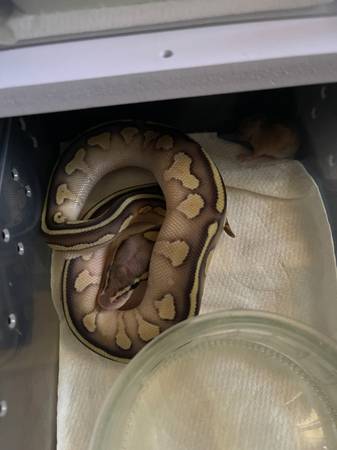 I have to many Ball Python hatchlings. They were hatched in October 10/25 and have eaten their first meals. Ball pythons are great starter snakes and are very docile and easy to handle. They can be very loving and make great companions. They are easy to take care of wit the correct set up. $25.00 dollar adoption fee to make sure they go to a good home. Not sure of the sex as their sex is hard to be exact in the first year. Discount for multiple purchases. I am willing to donate to a school.