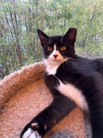 3 adorable friendly rescued kittens need a home, 2 males and 1 female. They were TNR - trapped, neutered and released with all needed shots including Rabies and FVRCP Vaccines, Nexgard treatment (deflea and deworm) -- tested negative for Leukemia & heartworm. We brought them inside on Oct 12 and they have adapted well. Born on 6/15/2025 they eat dry food, use a litter box, and love playing with a toy mouse and feather. Please call/text if interested in adopting, show contact info