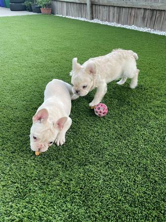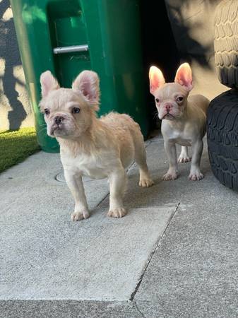 Rehoming ! These two frenchies Fluffy male and the other one it’s a Female 6 months olds And They come with all their shots , vet health check , and full AKC registration