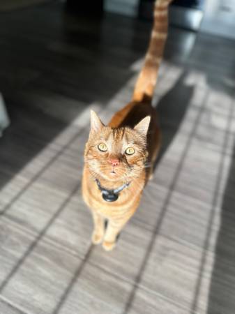 Milo (orange) and Olive (black) are American Shorthairs, brother and sister from the same litter, born in April 2018 and adopted in July 2018. They've been with us through multiple moves and our kids' births.