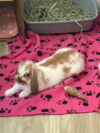 I have a male mini lop available for adoption. Sadly, he has to go due to failed bonding attempt with my other bunny. He comes with pellet food, some hay, food and water dishes and toys. To ensure that he goes to a safe home I am asking for a rehoming fee of $75.
