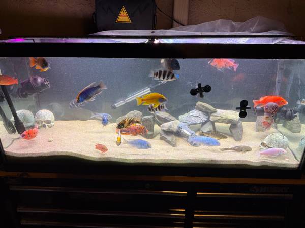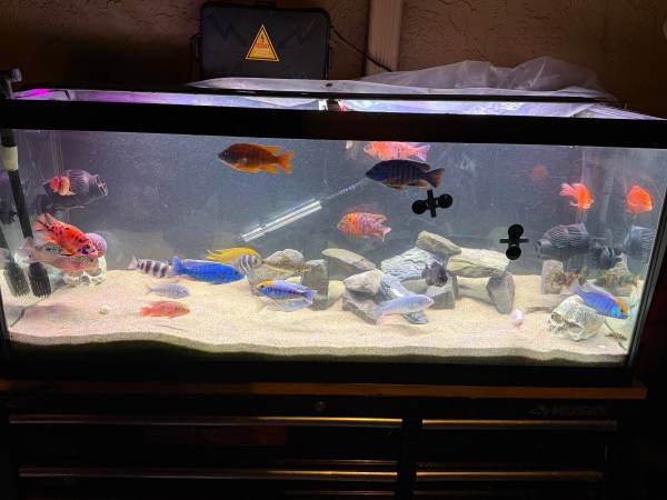 All the fish you see in the picture are for sale, just want to keep the flower horn but if I do sell it the flower horn is 80 dollars separately . Text show contact info
