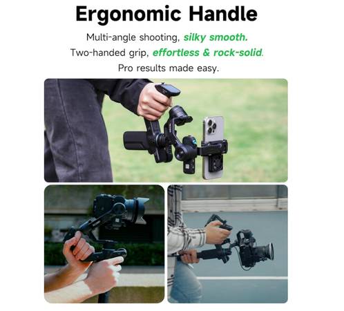 【Next-Level Stabilization with 4.4 lbs Payload】 Capture smooth, shake-free footage with a powerful 3-axis motor system supporting up to 4.4 lbs—ideal for smartphones, Action Cams, and lightweight mirrorless cameras with lenses up to 50mm.
