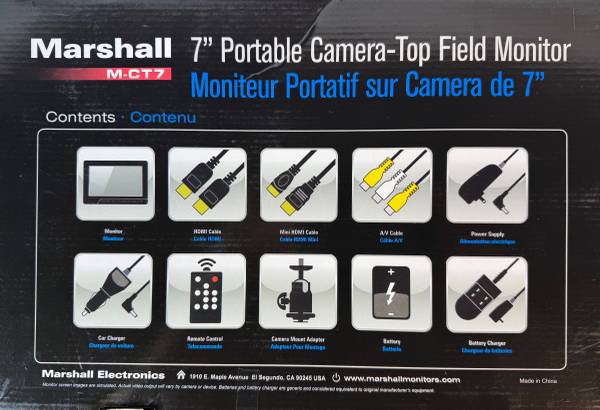 Marshall 7" Portable Camera-Top Field Monitor. M-CT7. Barely used, like new in a box. Including: