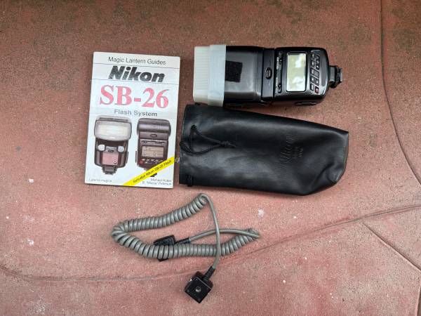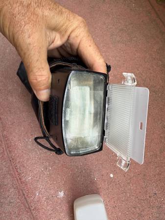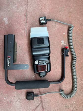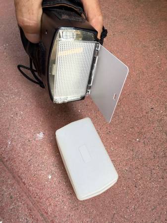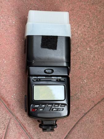 The flash is in excellent condition and comes with the SC-17 cable so it can be mounted off camera using the Stroboframe. Battery compartment is clean.