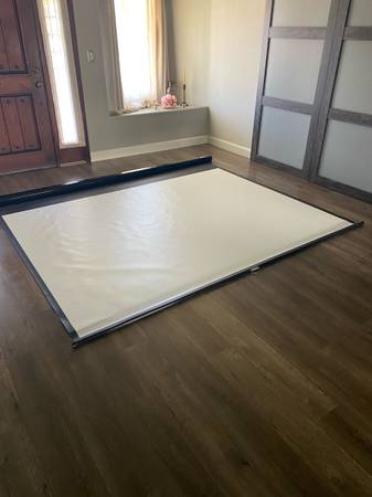 In good condition the brand is Elitescreens. Is a manual pull down. All other information are in the pictures