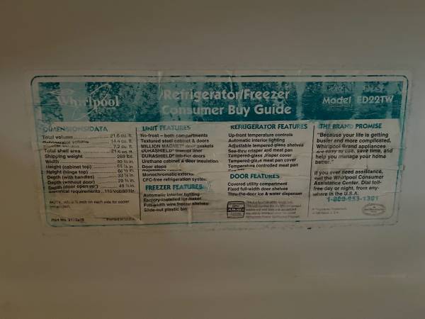 Greetings! We are selling this working Whirlpool side-by-side refrigerator freezer with an automatic icemaker and water dispenser for $100. If interested, please call me at . Thanks!