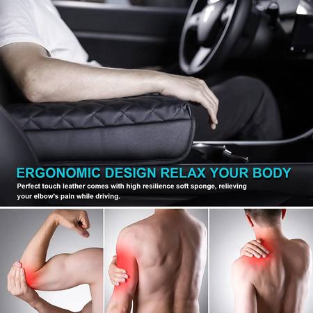 [Relax Your Arms] This Tesla center console armrest cover has built-in memory foam and moderate softness enough to support the pressure on your elbow without denting. Skin-friendly PU leather relieves elbow fatigue and pain caused by long hours of driving, and its ergonomic design relaxes your entire body. If you're planning a camping trip or long-distance driving, put it on and go!