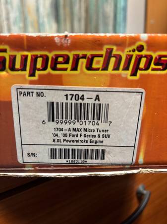 Superchips Max Microtuner to increase horsepower for a Ford 2004 or 2005 F series or SUV Power Stroke 6.0 Diesel. New in box If interested please call. Don’t text or email. Won’t respond to text or...
