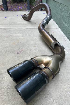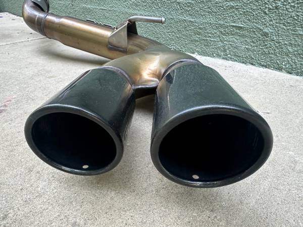 The OEM product is in excellent, almost brand new condition--there are no dings at all, and all hangers, guards, and welds are in perfect order, as you can see in the photos. The mini-resonator, also in perfect order, helps to produce a throatier sound. The axleback exhaust has a few miles on it, but I pulled it off my truck for a shortened, axle dump exhaust tip for more extensive four wheeling and related clearance--I definitely did not want to crush this beauty of an exhaust axleback, and I'm not too concerned about losing some of the horsepower (read: slower driver, and never any towing!). Of note, the black chrome tips need to be polished with Chrome Polish--I just don't have any--JB Tools sells a jug for $5!