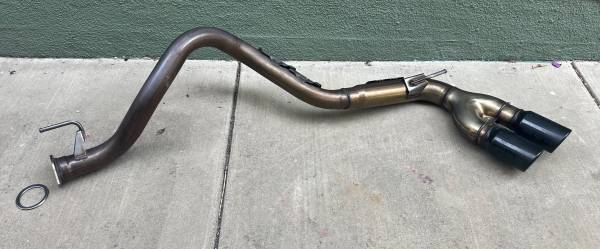 - Includes axle back exhaust with mini-resonator and dual black chrome tips; 2 bolt installation (very easy).