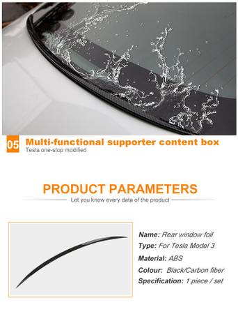 Wings Restraint For Tesla Model 3 Accessories Spoiler Carbon Fiber ABS Trunk Rear Spoiler Cover Trim Water Retaining Wing Model3, $100 cash pick up, reply with your contact info if interested, thanks.